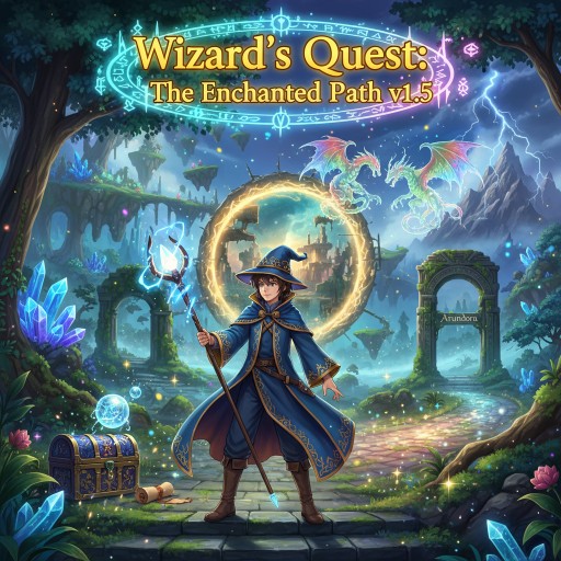 Embark on a mythical journey to uncover the lost kingdom of Arundora. In 'Wizard's Quest: The Enchanted Path v1.5', wield your staff as an aspiring mage, casting spells and battling mystical creatures across 20 enchanting realms. Solve riddles, collect ancient artifacts, and forge alliances with other wizards in this epic role-playing adventure.
