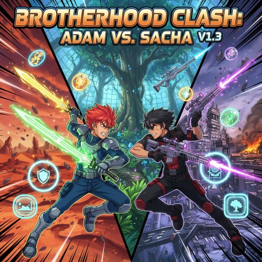 Once inseparable best friends, Adam and Sacha's friendship shattered overnight. Petty jealousies snowballed into all-out rivalry! Now, they face off across three dynamic maps—desert wasteland, forest dome, and urban grid—collecting randomly spawning weapons as they engage in intense combat. The first to eliminate the other wins! MajorPLAYERs can upgrade weapons, switch map黄 ijuan/ scene mid-combat, andoptimize their playstyle for maximum destruction.