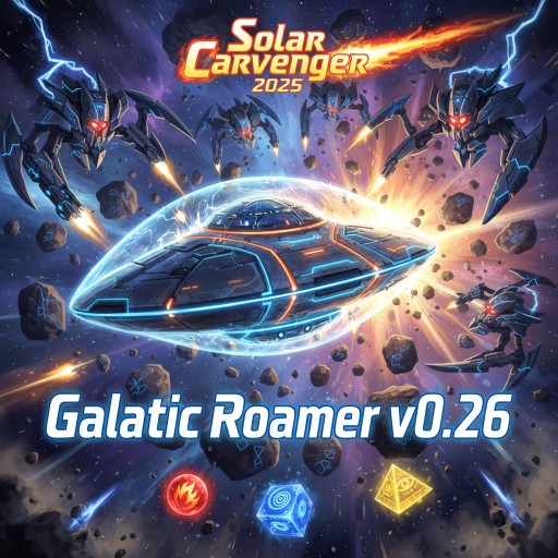 Embark on an epic intergalactic journey where the fate of the universe hangs by a thread. In 'Solar Carvenger 2025', you'll navigate a sleek, high-tech flying saucer through treacherous asteroid fields, outmaneuvering enemy guardians with a split second's precision. Collect power-ups to augment your ship's capabilities and uncover scattered relics hidden by ancient civilizations across three distinct galaxy zones. Are you ready to unleash the full potential of your 'Galactic Roamer v0.26', and unlock its hidden secrets?