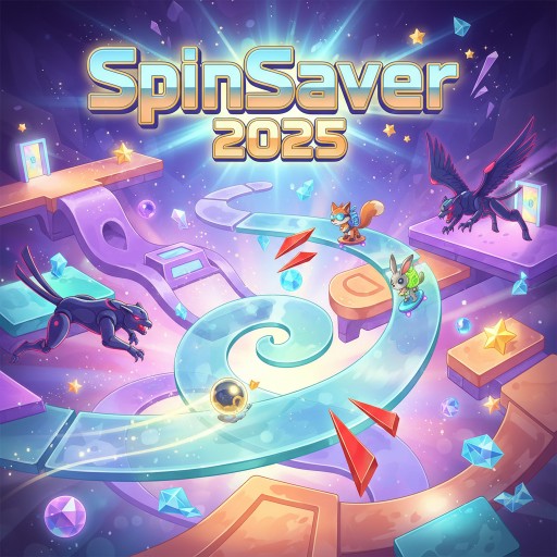 Embark on a visually stunning journey through a futuristic playground filled with strange and delightful shapes. In 'SpinSaver 2025', you control a tiny, colorful ball that must navigate through a winding, elliptical path. Meet various allies and enemies along your path, each with their own objectives. Can you unlock hidden spaces and bonuses while evading harmful shapes and mastering the art of timing and precision?