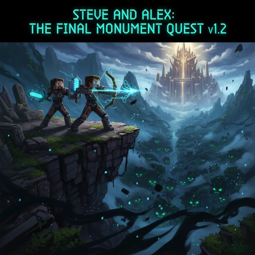 Steve and Alex face their final adventure in 'Steve and Alex: The Final Monument Quest v1.2'. Clad in battle armor, they venture into a level where invisible monsters lurk in shadows. These aren't ordinary foes, possessing green eyes that glow eerily in darkness, mysterious and challenging. Join Steve and Alex as companions who rely on their unique abilities to conquer each obstacle. Every step forward reveals hidden dangers, with the ancient Monument waiting at the level's end. Be careful! The darkness hides unexpected threats, demanding alertness and precision. Prove yourself capable by helping them eliminate every monster and reach that sacred Monument. This adventure challenges coordination, courage, and tactical thinking. Are you ready to guide Steve and Alex toward victory and complete their legendary journey?