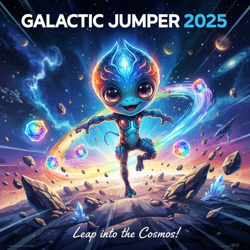 Explore the vast expanse of space with Zor, a friendly little alien. In 'Galactic Jumper 2025', you'll navigate through intricate asteroid fields, collect cosmic energy cores to power up, and outsmart空间跳跃者2025。在这广阔无垠的宇宙中,扮演友好的小外星人Zor,穿越复杂的陨石带,收集宇宙能量核心以增强实力,并巧妙避开障碍物。你能否成为真正的太空王者,挑战极限得分?