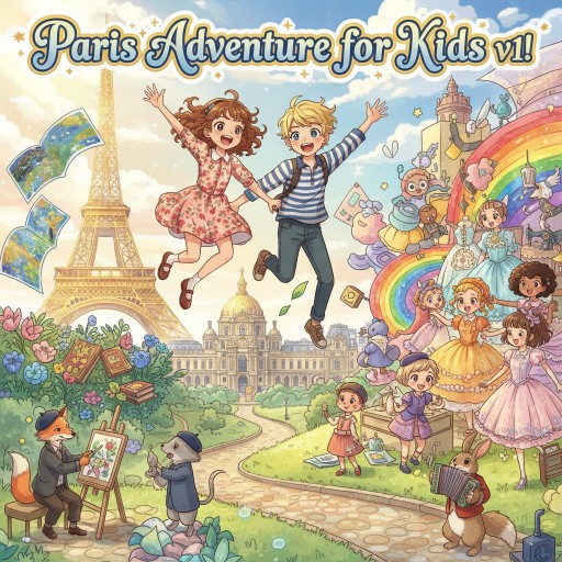 Welcome to 'Paris Adventure for Kids v1!' – a magical journey through the very streets of Paris! Join our adorable characters, Lila and Henri, as they explore iconic landmarks like the Eiffel Tower, Louvre Museum, and charming Parisian neighborhoods. Discover hidden stories in the Eiffel Tower's shadow garden, learn from friendly artists in Montmartre's winding streets, and unlock interesting facts as you explore. Unleash your creativity by designing fashionable outfits at the Paris Fashion Workshop or coloring beautiful pages inspired by French masterpieces. Solve clever puzzles, complete quests, and uncover surprising secrets as you navigate through Paris' picturesque streets. Immerse yourself in the rich French culture through interactive storytelling about artists, history, and cuisine. With vibrant visuals, cheerful music, and age-appropriate gameplay, Paris Adventure for Kids v1! offers an engaging, educational experience that nurtures imagination, develops cognitive skills, and sparks lifelong learning in a fun, exciting environment.