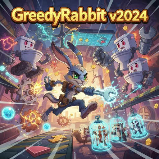In 'GreedyRabbit v2024', you play as a clever rabbit on a mission to outsmart and outpace the notorious Skibidi Toilets. Navigate through a quirky, fast-paced world filled with tricky traps and fast-moving enemies. Use your quick reflexes and strategic planning to evade, destroy, and rescue your way through the challenges. Each level brings new surprises, from hidden shortcuts to powerful upgrades that can turn the tide in your favor. Can you prove that brains beat brawn in this high-stakes showdown?