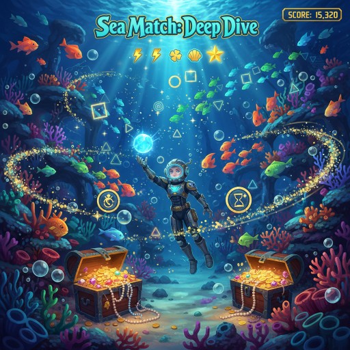 In 'Sea Match: Deep Dive', you'll embark on an underwater adventure where every match of 3 or more fish unlocks hidden treasures and boosts your score. With time-limited challenges and a vibrant ocean world to explore, players must think fast and strategize wisely to collect enough crystals and earn top-tier stars. When stuck, use special power-ups to turn the tide in your favor!