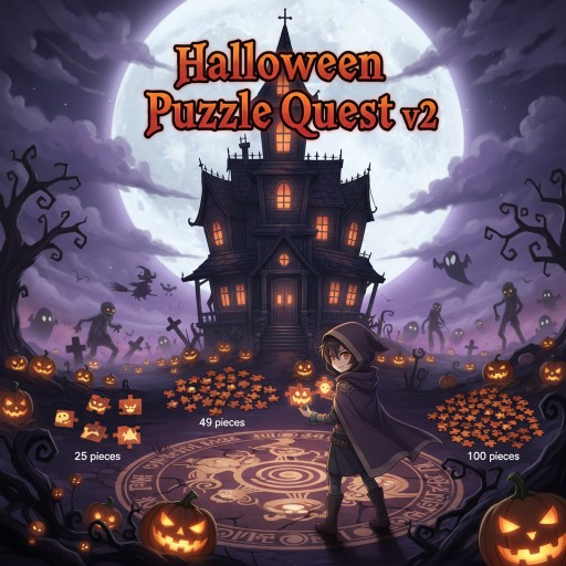 Step into a spooky world where every piece tells a story. In 'Halloween Puzzle Quest v2', you'll unravel mysterious scenes filled with haunted houses, glowing pumpkins, and eerie creatures. Choose from three difficulty levels—Easy with 25 pieces, Medium with 49 pieces, or Hard with 100 pieces—to challenge your puzzle-solving skills and unlock new Halloween-themed images. Get ready to piece together the magic of the season!