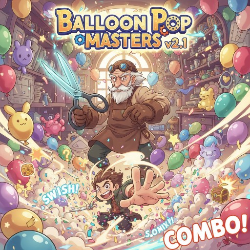Dive into the enchanting world of 'Balloon Pop Masters v2.1!' Enter the vibrant workshop of The Balloon Craftsman as he challenges you with a series of delightful popping challenges. With 20 cleverly crafted levels testing your logic and tapping skills with increasing fun, your task is to pop vibrant balloons using carefully timed releases with the scissors. Each level unfolds new creative challenges requiring quick thinking and precise coordination. Feel the satisfaction of successfully popping balloons as bright colors burst forth in celebration, creating an entertaining visual feast. Discover special popping effects and bonuses as you solve each puzzle, adding exciting gameplay layers. Your workshop adventure starts now - are you ready to become a skilled balloon popper and conquer every level with style?