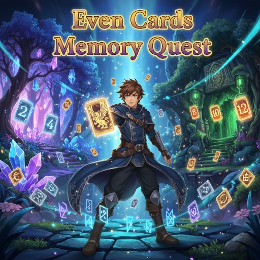 Embark on a thrilling memory adventure with 'Even Cards Memory Quest'! In this captivating game, you journey through enchanted card realms where you must gather all even-numbered cards while uncovering ancient secrets and legendary stories. Match cards skillfully as you explore beautifully designed levels with stunning graphics. The game tests your memory precision combined with strategic thinking abilities, offering engaging challenges. Each card holds unique properties and secrets that unlock special bonuses. Navigate through imaginative landscapes while perfecting your card-matching skills. Collect all cards to unlock achievements and become the 'Memory Master'!
